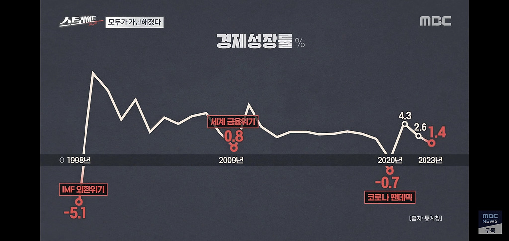 한국의 경제성장률이 2% 아래로 떨어진 건 1990년대 이후 딱 3번.
