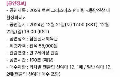 백현 팬미팅 가격 55000원, 온라인 생중계 11000원