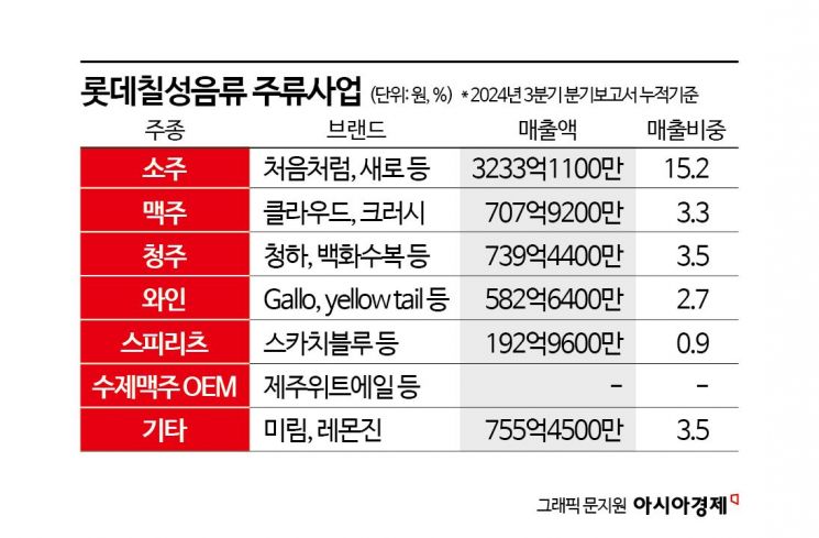 지난해 롯데칠성음료 주류사업의 영업이익은 336억원으로 전년 대비 9%가량 감소했다. 주류사업의 영업이익률은 4.2%로 음료 사업(8.3%)의 절반 수준에 불과하다.