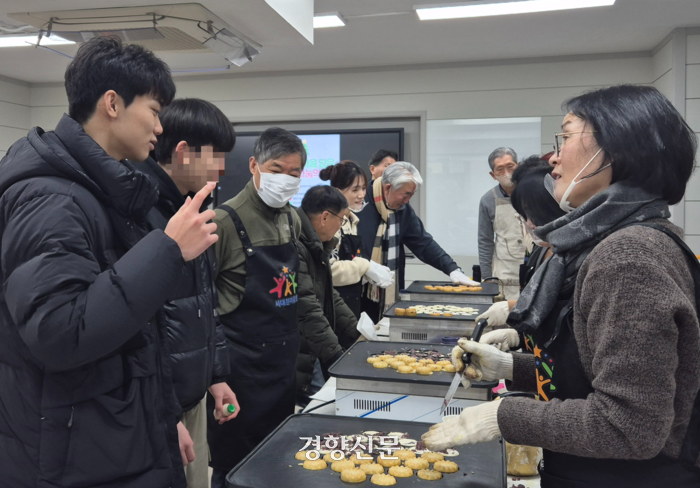 18일 오전 5시30분 서울의 한 고등학교 교실에서 새어나오는 달착지근한 풀빵 냄새가 고요한 새벽을 깨웠다. 고등학생의 부모뻘, 조부모뻘 되는 사람들이 모여 풀빵을 구우며 나누는 대화가 지난밤 썰렁했던 교실을 따스하게 데웠다. “아이들 올 때까지 식으면 안 될 텐데”. 교실 한쪽에 놓인 보온통에 모락모락 김 나는 풀빵과 함께, 학생들을 기다리며 설레는 마음이 차곡차곡 담겼다.
