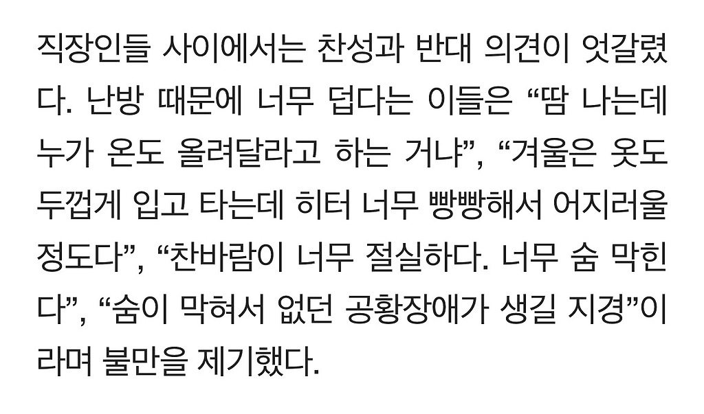 이슈 겨울철 출퇴근길 지하철 히터 논란 1vs2