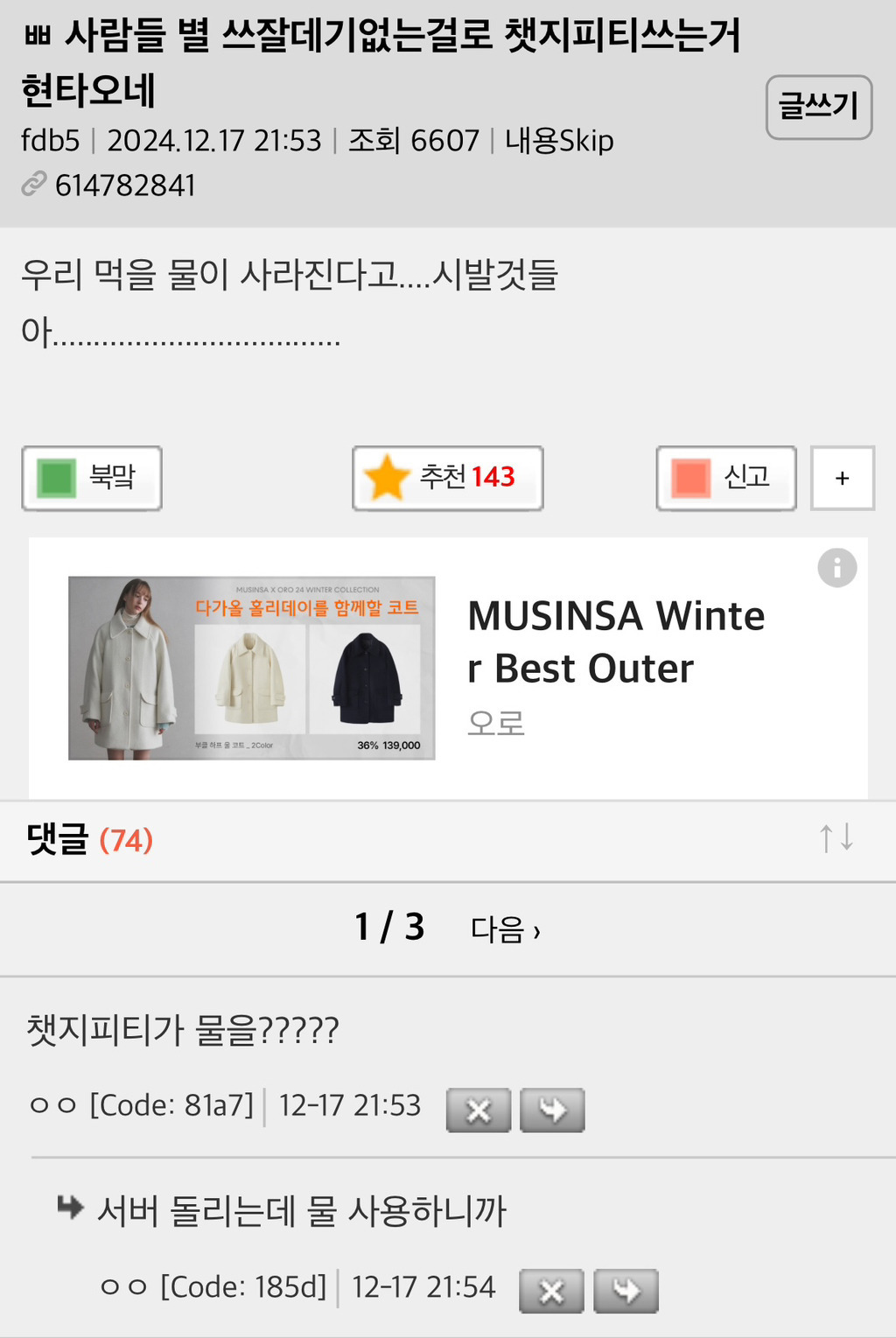 이 글 때문에 챗지피티 안 쓰겠다는 여시들이 엄청 많더라고.