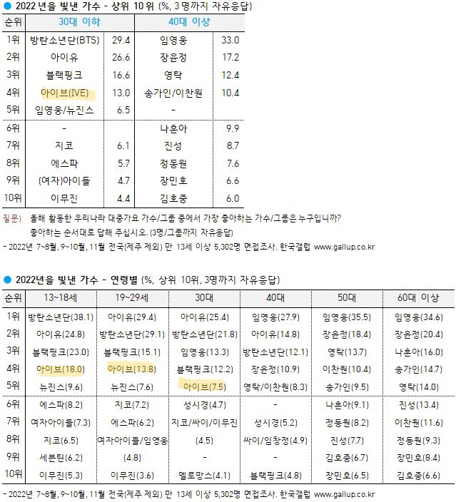 2022년을 빛낸 가수 (30대 이하)