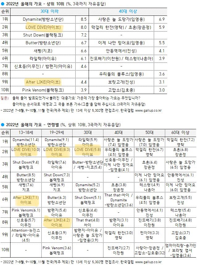 2022년 올해의 가요 (30대 이하)