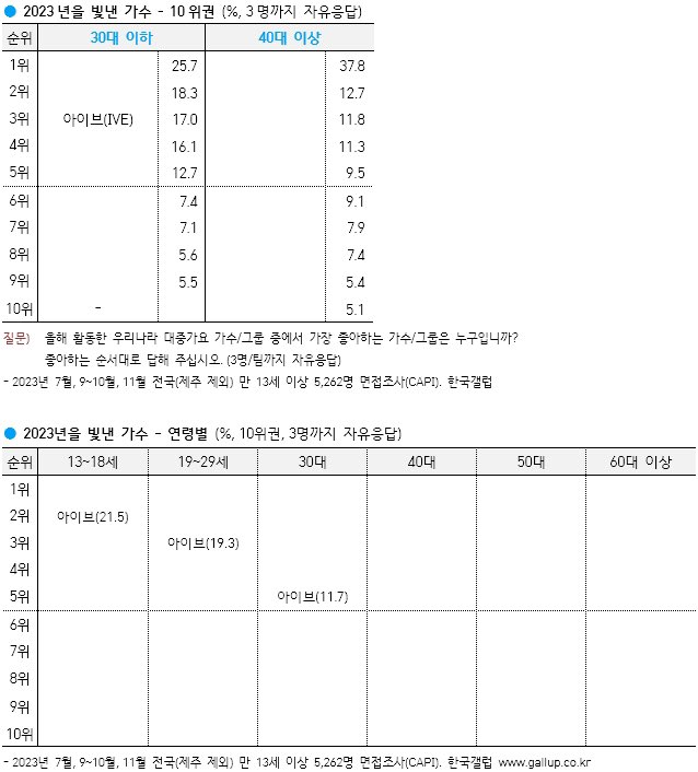 2023년을 빛낸 가수 (30대 이하)