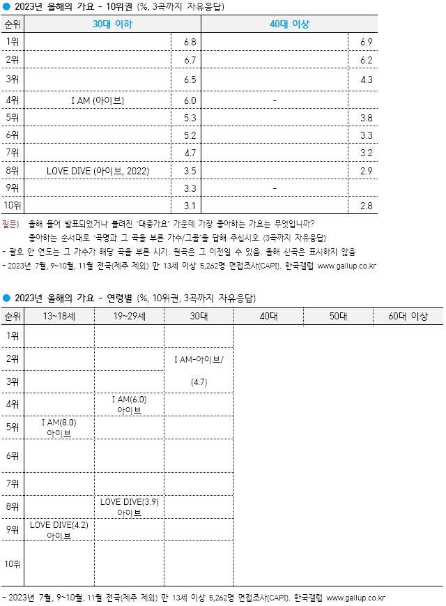 2023년 올해의 가요 (30대 이하)