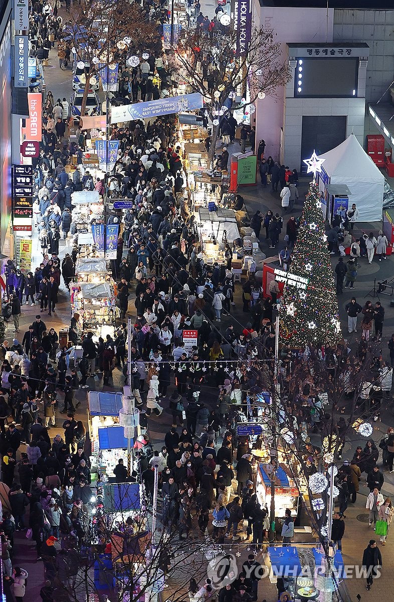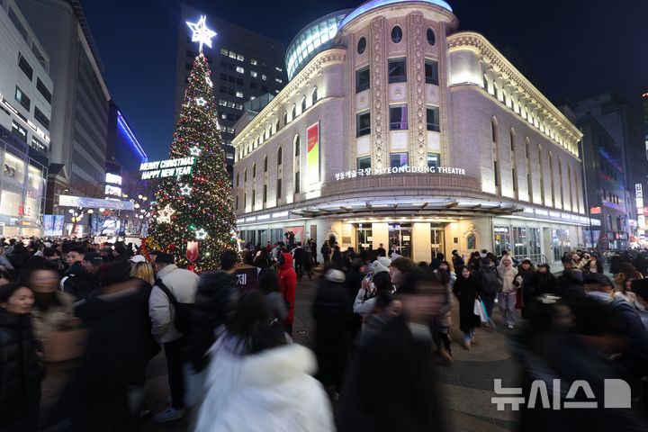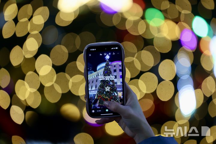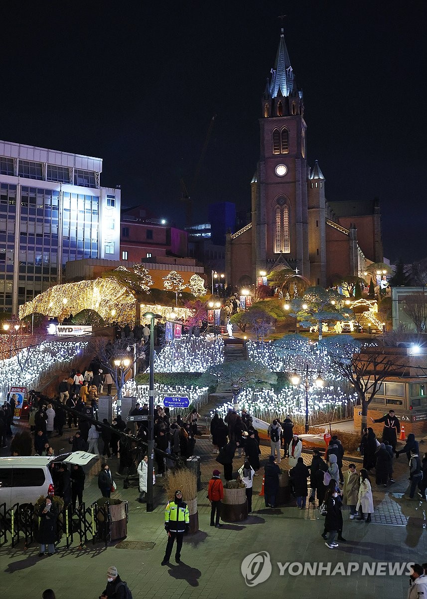 (서울=연합뉴스) 김도훈 기자 = 24일 오후 서울 중구 명동성당을 찾은 시민들이 크리스마스 이브 정취를 즐기고 있다. 2024.12.24