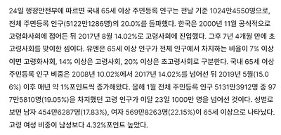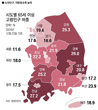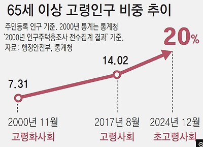 65세 이상이 20%이상, 초고령화사회 진입