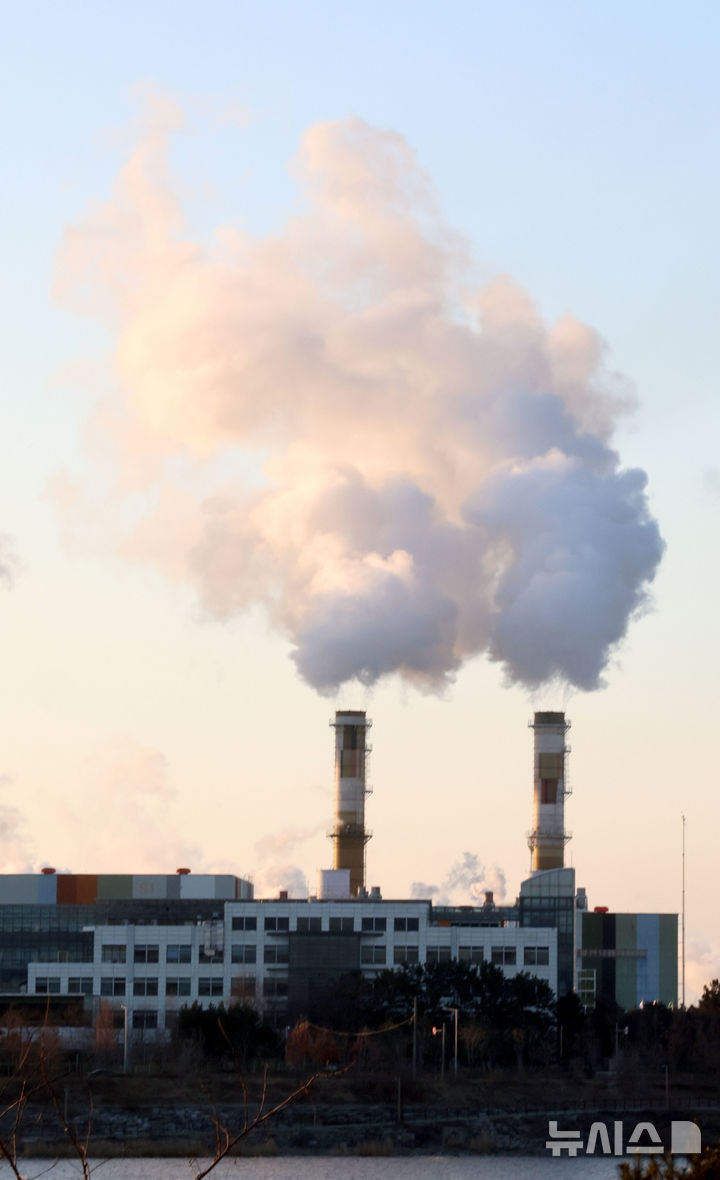 [인천=뉴시스] 전진환 기자 = 수도권에 한파주의보가 내려진 9일 오전 인천 서구 서인천복합화력발전소 굴뚝에서 수증기가 뿜어져 나오고 있다. 2025.01.09. amin2@newsis.com