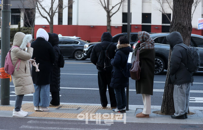 [이데일리 김태형 기자] 올겨울 첫 한파주의보가 발효된 9일 오전 서울 광화문네거리에서 시민들이 두꺼운 옷차림으로 시내버스를 기다리고 있다.
