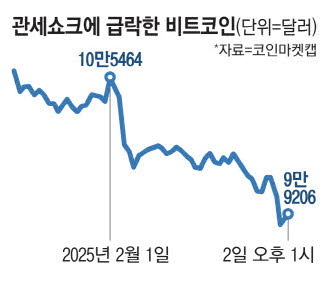 미국발 관세 쇼크로 세계 가상자산 시가총액이 하루 만에 1600억달러(약 233조원)가량 증발했다. 최근 별다른 호재가 없는 상황에서 글로벌 경제에 악재가 생기자 투자 심리가 무너진 것으로 보인다. 도널드 트럼프 미국 대통령은 캐나다와 멕시코 등에 관세를 부과하기로 결정했다.