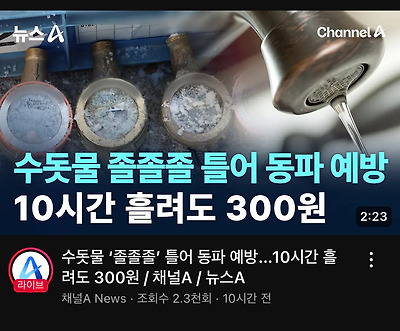 "혹한 시에는 수도꼭지를 똑똑똑이 아닌 졸졸졸 틀어주세요. 가늘고 길게 졸졸 틀어주셔야 됩니다."