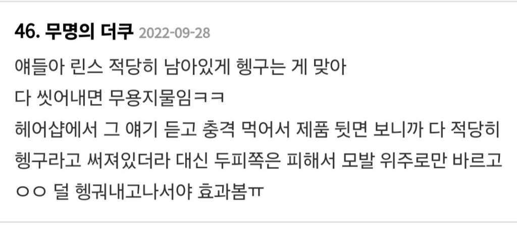 린스 잘 안 하는 사람들은,,, 사실