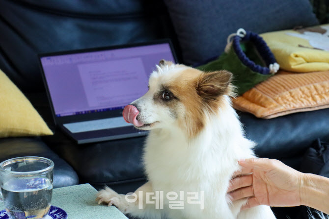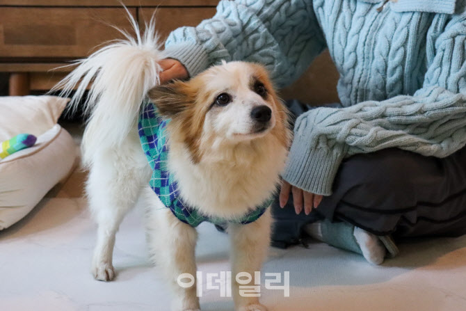 | | 지난 13일 경기 하남시 한 아파트에서 이씨가 푸딩을 쓰다듬고 있다. (사진=이재은 기자) |
