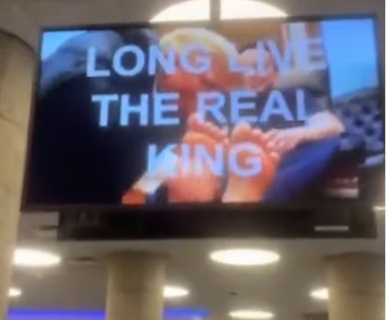 영상에는 '진짜 왕 만세'(Long Live the Real King)라는 메시지가 쓰여 있습니다.