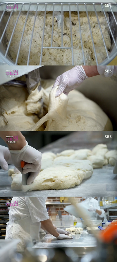 수없이 반복하며 찰기 있는 반죽을 구현함
