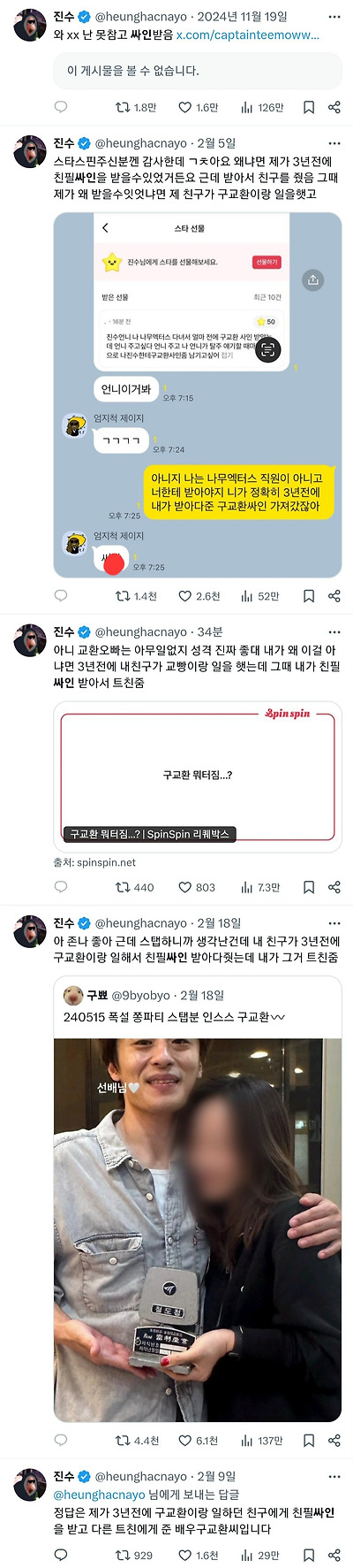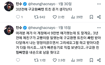 진수가 구교환 친필 싸인 친구한테 준 이야기를 작년 11월 14일에 처음 꺼냈음.