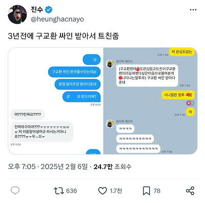진수한테 구교환 싸인 구해다 주겠다는 사람들은 간간히 나왔는데