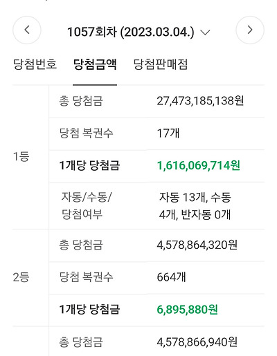 2등 당첨개수 664장 당첨금액 6,895,880원이라는 초유의 사태가 일어남
