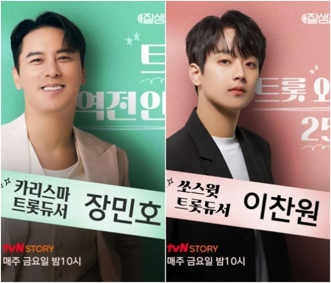 기사/뉴스 카리스마 장민호 vs 쏘스윗 이찬원, 역대급 트롯듀싱 대결 ('잘생긴 트롯')