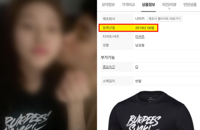 또한 김수현 측은 이 같은 주장을 뒷받침하기 위해 가세연에서 공개된 김수현과 김새론의 사진에 대해 “모두 2020년 초 겨울의 같은 날 교제 중이던 두 사람의 사적인 모습을 담은 것”이라며 그 증거로 당시 김새론이 입은 옷의 브랜드 상품정보를 제시했다. 이에 따르면 이 티셔츠의 등록 정보는 ‘2019년 6월’로 표기돼 다. 이에 해당 사진이 김새론이 미성년자 시절인 촬영됐다는 주장은 성립할 수가 없다고 주장한 것.