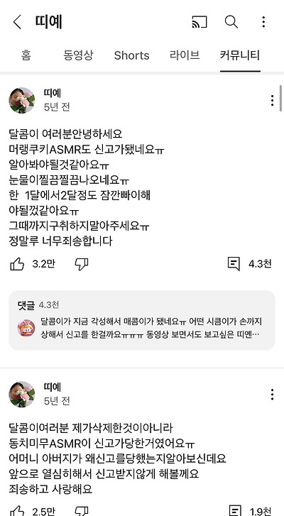 누군가 질투해서 띠예 영상이 다 없어지고 그러기도 함