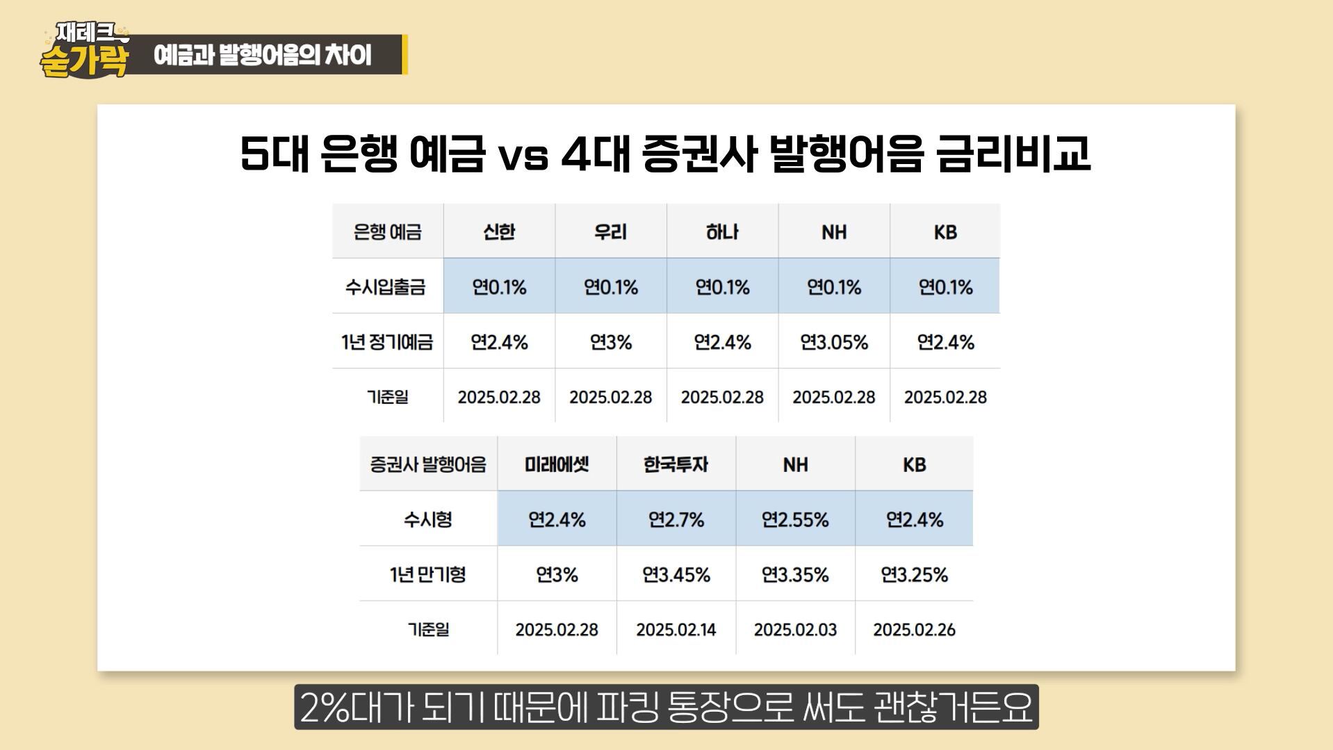 5대 은행 예금과 4대 증권사 발행어음 금리 비교표. /재테크숟가락 캡처