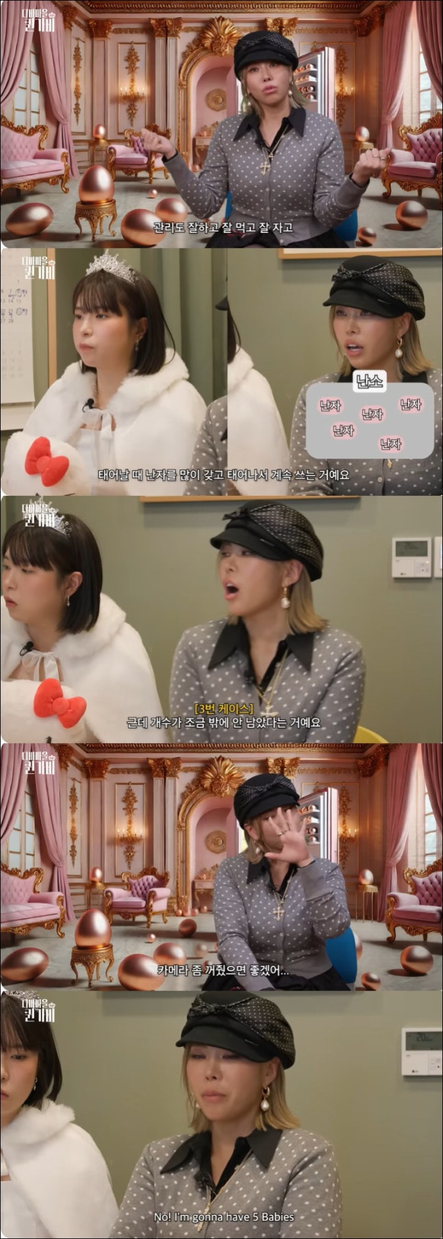 전문의는 "임신율이 떨어지는 건 아니다. 난자는 임신하는 거 말고는 다른 기능이 없다. 출산 계획이 없다면 사실 신경 안 써도 된다"고 했지만 가비는 "아니다. 난 아기 다섯 명 가질 거다. 난자 얼려야겠다"고 결심했다.