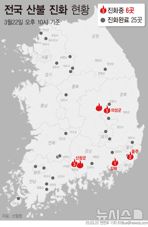 [그래픽] 전국 산불 진화 현황 (오후 10시)