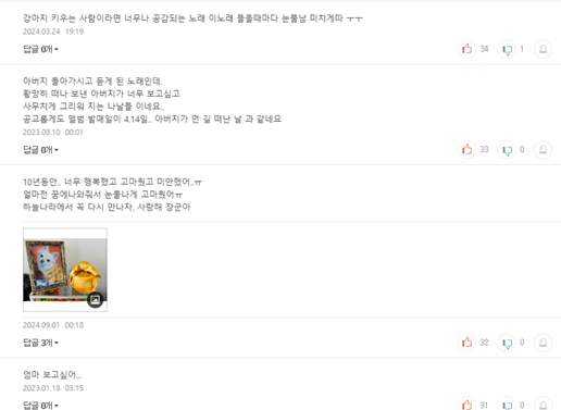 멜론 앨범 댓글도 ㅠㅠ 반려동물 뿐만 아니라 소중한 사람 떠나보낸 사람들도 가사에 공감중…