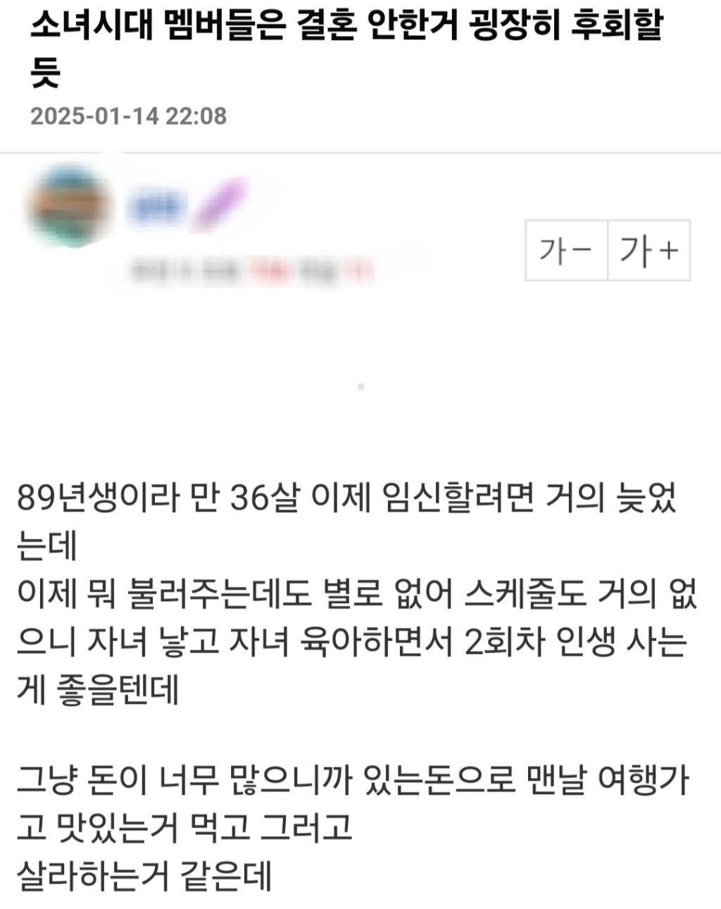 소녀시대 멤버들은 결혼 안한 거 굉장히 후회할 거라는 한국남자