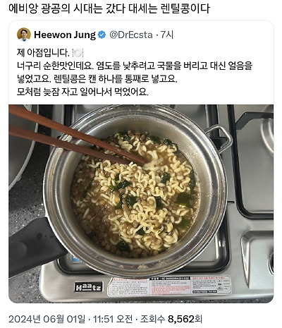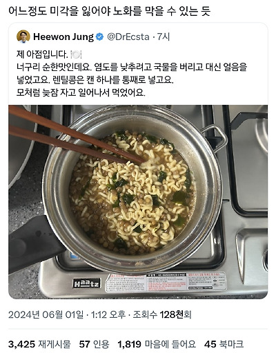 이슈 저속노화밥 유행시킨 트위터리안의 충격적인 너구리 라면.twt