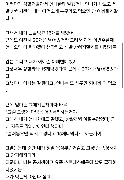 간장새우많이먹었다고(15개먹음) 엄마가 뭐라했는데 괜히 속상하다