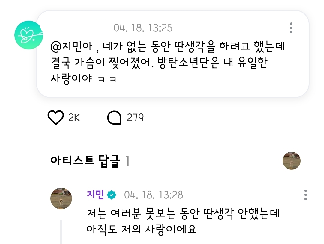 핫게 갔던 우주소녀 설아가 입양한 유기견 만복이 인스타 개설.🐶