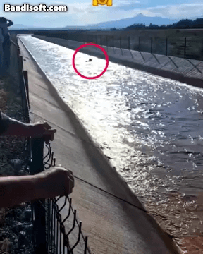 물에 떠내려가는 소를 구조한 포크레인 기사.gif