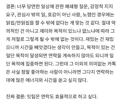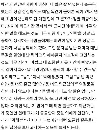 출처 : 여성시대 생각말고 해<주의>Mbti일반화 아니고잇팁, 인팁 유형이 이런 연락 유형을 안좋아하는 사람이상대적으로 많다는거임.난 아닌데(?)그럼 케바케지 뭐 쓰루하셈