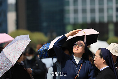 이날 분향소를 찾은 한 수녀는 “교황님이 직접 찾아오신 것 같다”라며 손을 모아 기도를 했고, 현장에 있던 신도들과 조문객들도 하늘을 향해 휴대전화 카메라 셔터를 연신 눌렀다.
