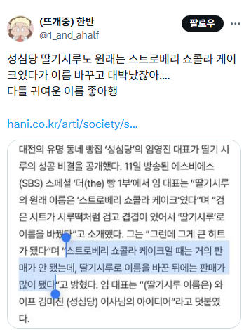 이슈 이름 바꾸고 대박났다는 성심당 딸기시루