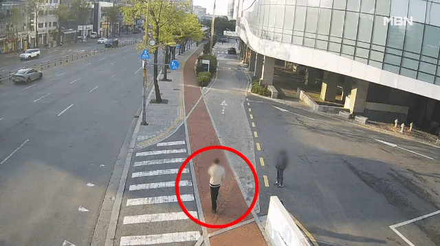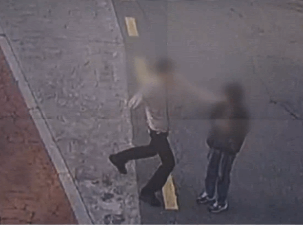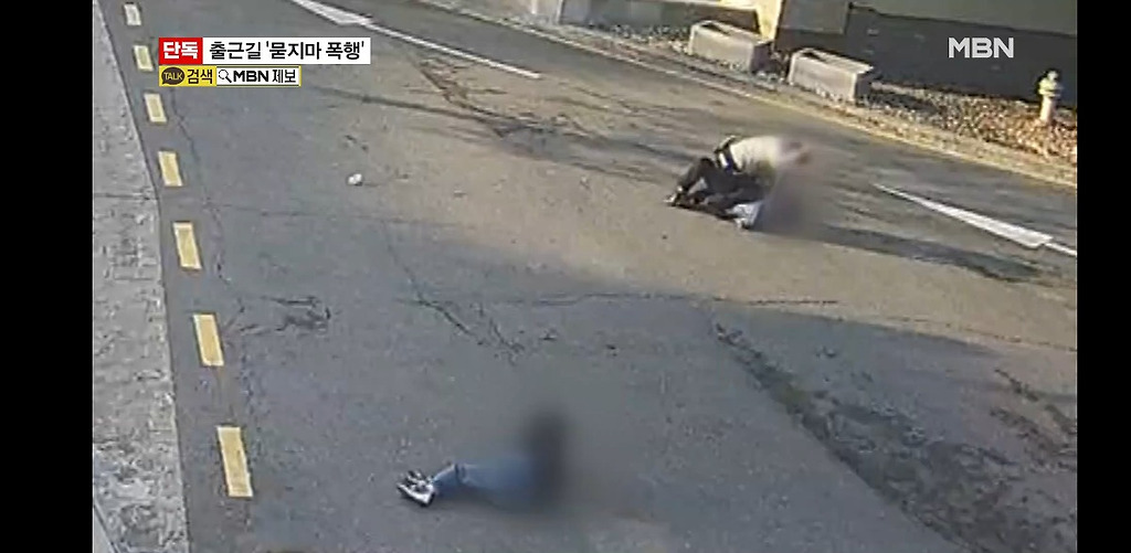 벽에 잠시 기댔다가 힘없이 쓰러지는 폭행 피해자