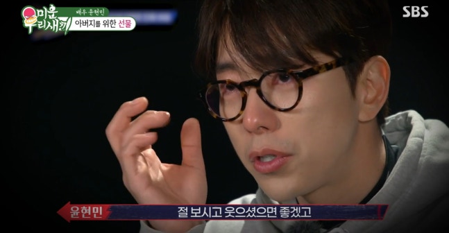 이날 방송에서 윤현민은 숨겨왔던 가정사를 공개했다. 3살때 부모님이 이혼했고, 이후 아버지가 재혼해 두 명의 어머니가 있다는 것. 새어머니에게도 어머니라고 불러 놀라움을 안겼다.
