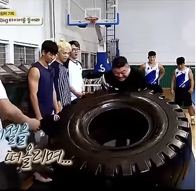 강철부대 4명이 넘겼던 300kg 타이어 혼자 넘기는 강호동