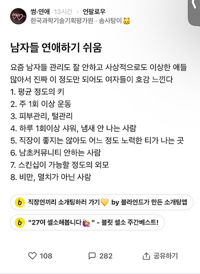 [블라인드] 남자들 연애하기 쉬움