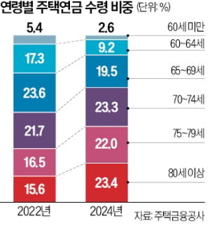 주택연금 수령 고령화는 매년 빠르게 진행되고 있다. 10년 전(2014년)만 해도 80세 이상 비중은 14.8%였다. 2020년 처음으로 20% 벽을 넘어선 후 지난해 사상 최고치로 뛰었다.