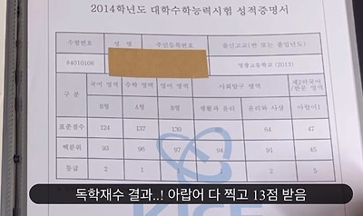 독학재수해서 2013년 11월 시행된 14수능 국수영/사탐 각각 2,1,1/1,2등급 받음