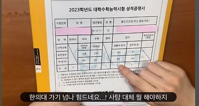 하지만 저 점수로 한의대는 못가기에 입시는 실패