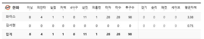 [KBO] 오늘자 '대전 예수' 라이언 와이스 8이닝 11K 하이라이트.gif