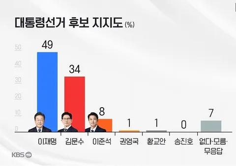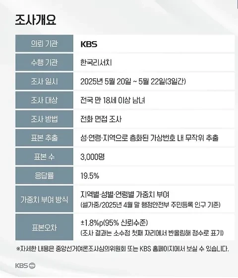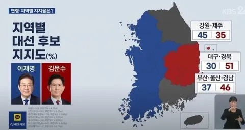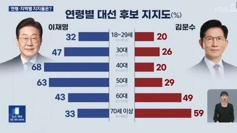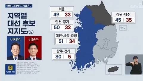 오늘 저녁 KBS 여론조사 권역별 세대별 지지율