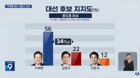 진보 812 중도 975 보수 987 모름 226 (표본수 3천명)