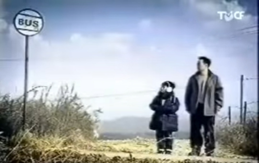 와중에 한 아이와 아저씨만 그 버스를 안타고 다른 버스를 기다림
