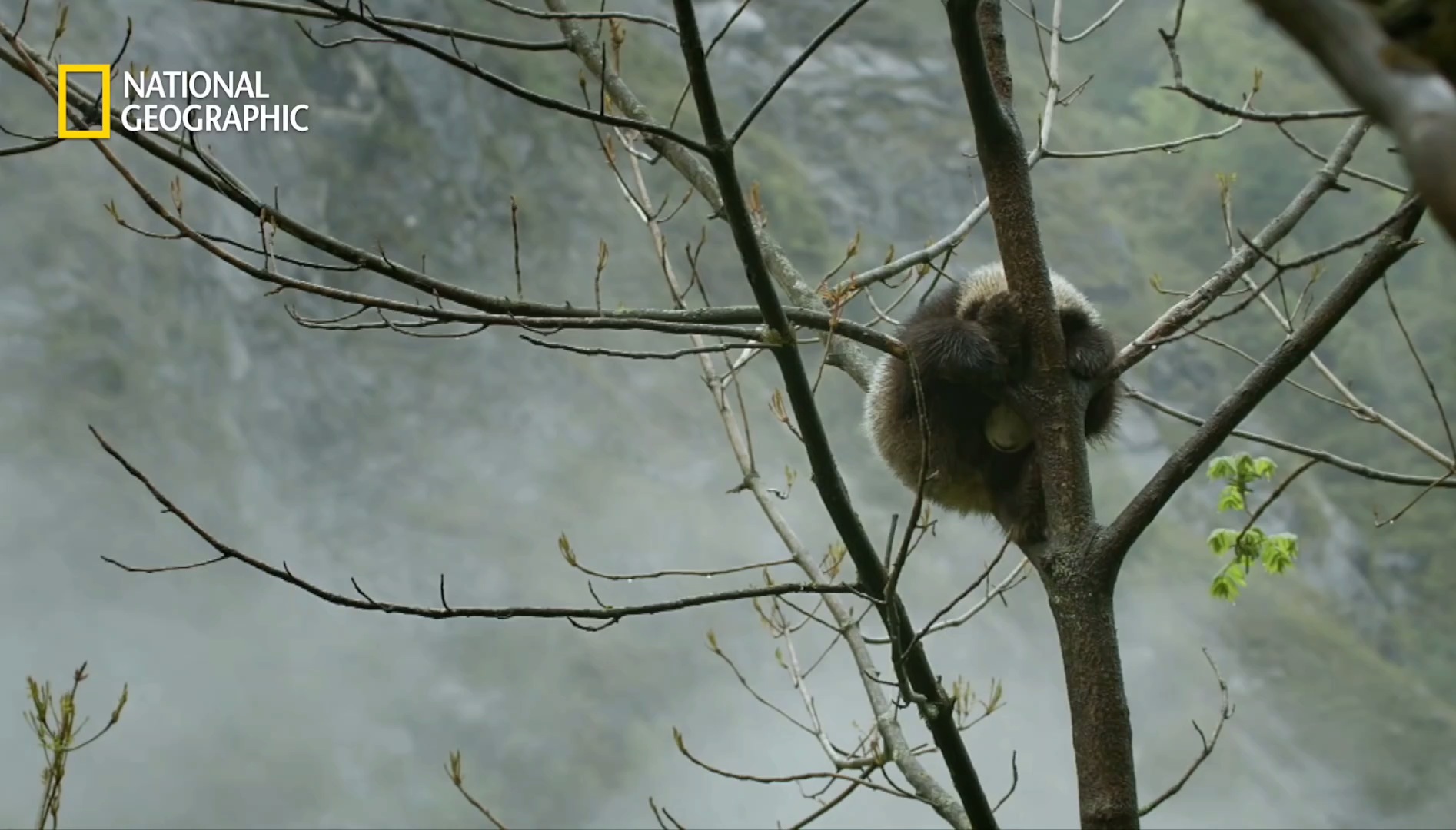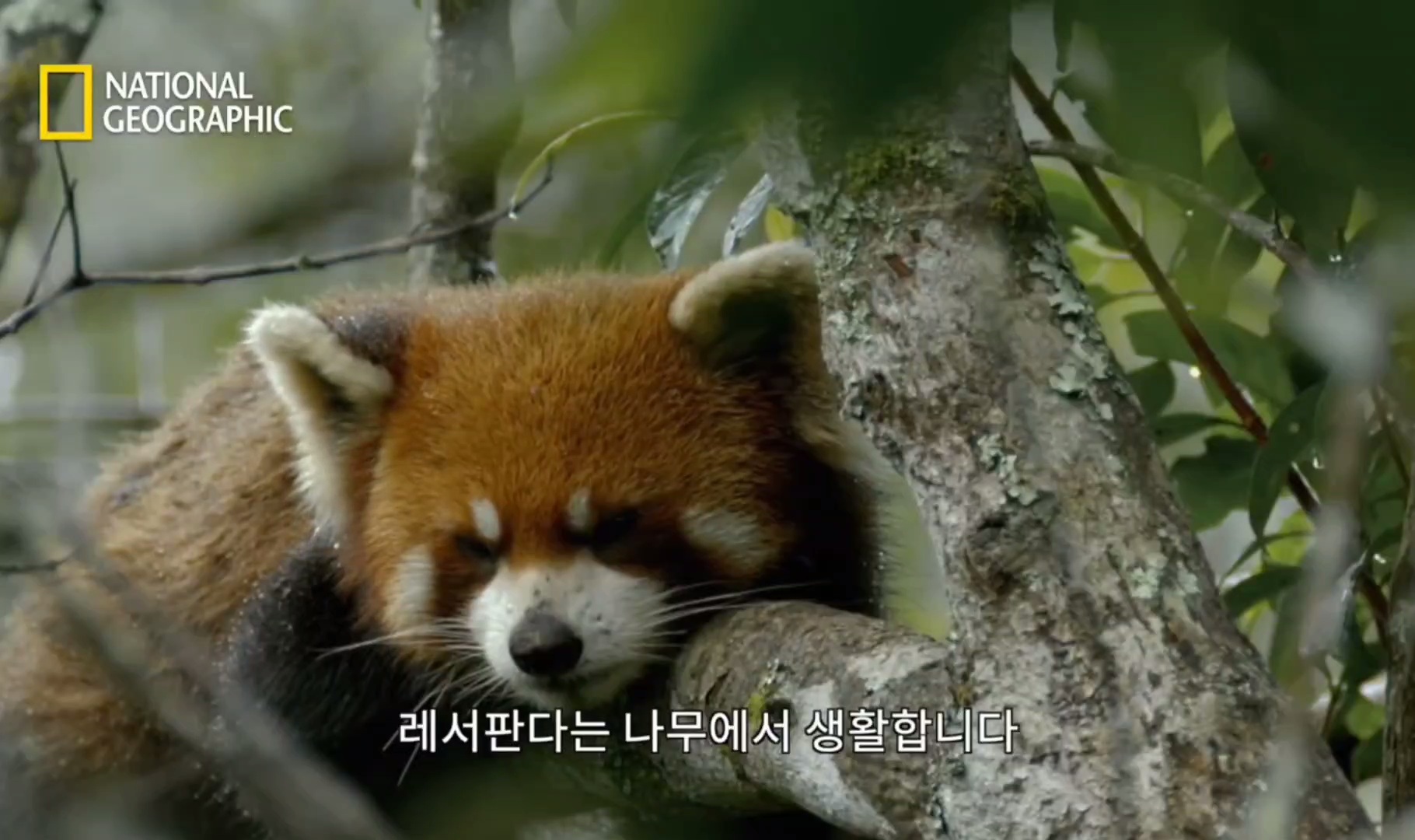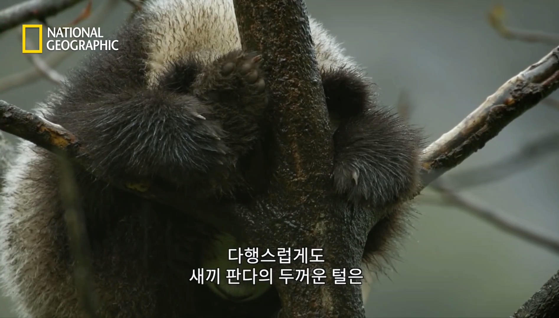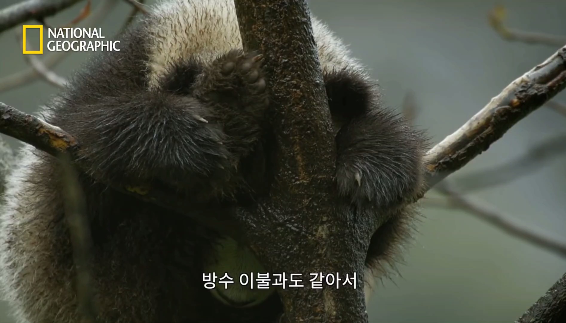 나무 위에서 비쫄딱맞는 새끼판다
